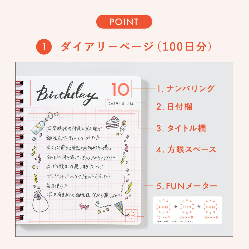 中の罫線や数字がオレンジなところもハッピーな雰囲気でかわいいです^^
