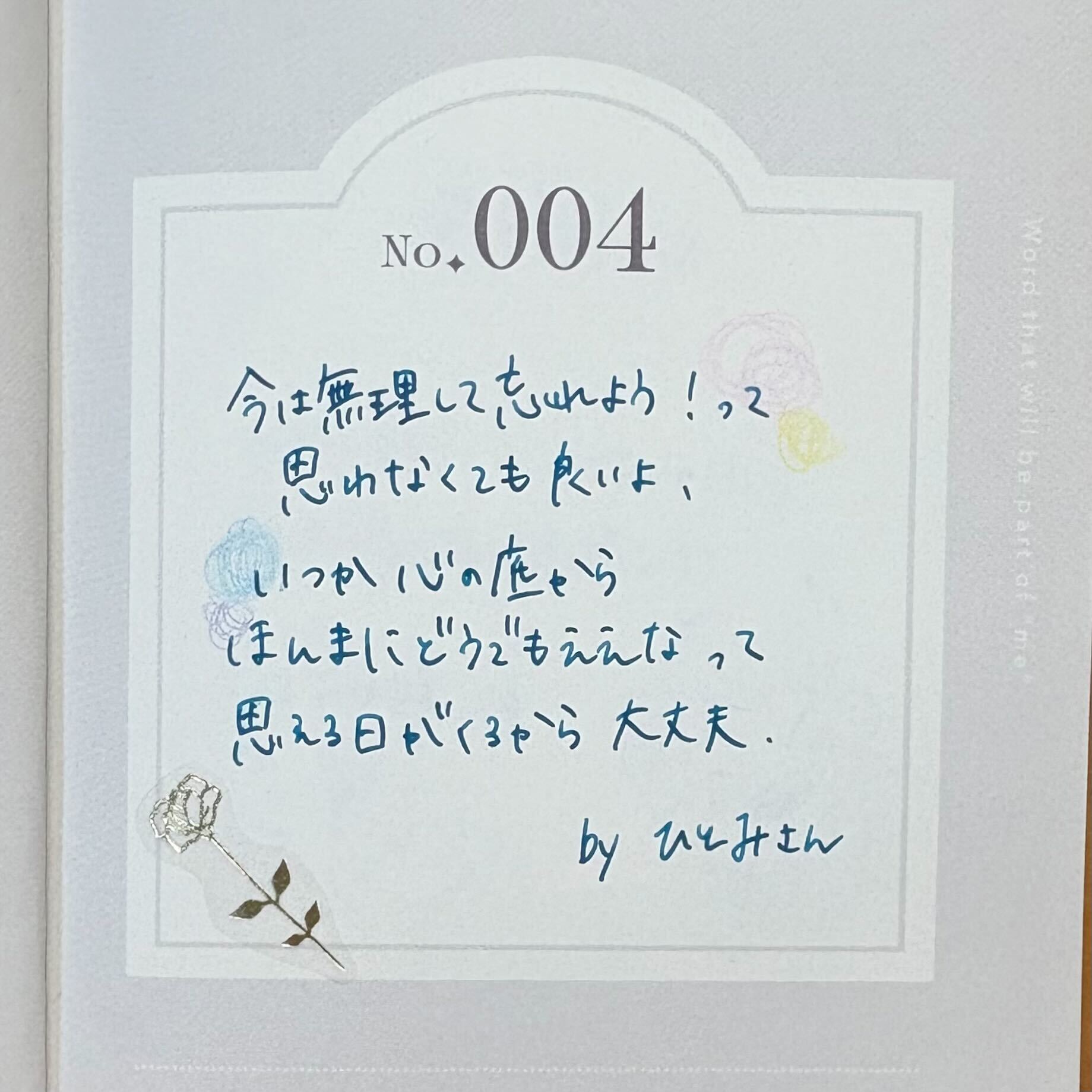 これからもいただいた言葉を大切に私だけの名言集を作っていけたらと思います♪