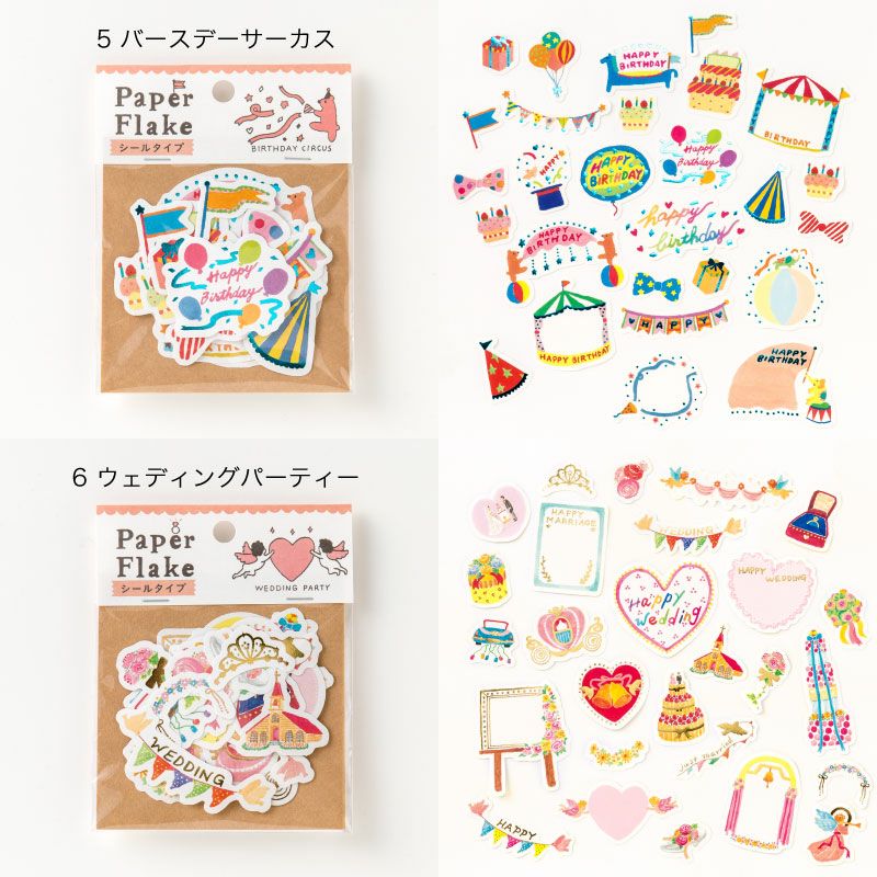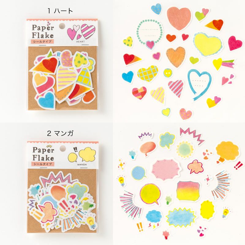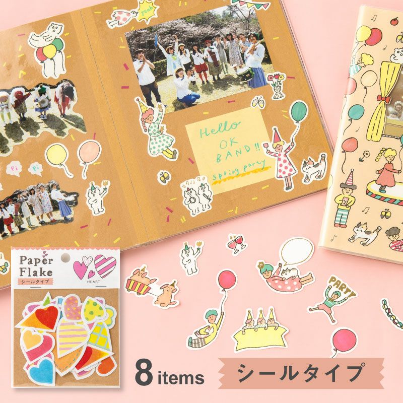 アルバムを手軽にかわいくデコレーションできる ペーパーフレイクのシールタイプ。