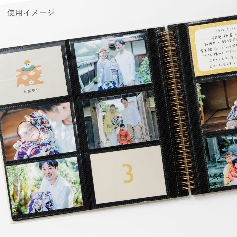 大容量アルバムと 3 種類のデコレーションカードのセット。