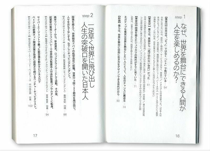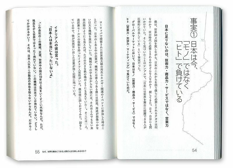 世界に飛び出す前は、自らを“英語さえまともに話せなかった、ドメスティックな僕”と称す著者自身の体験談、