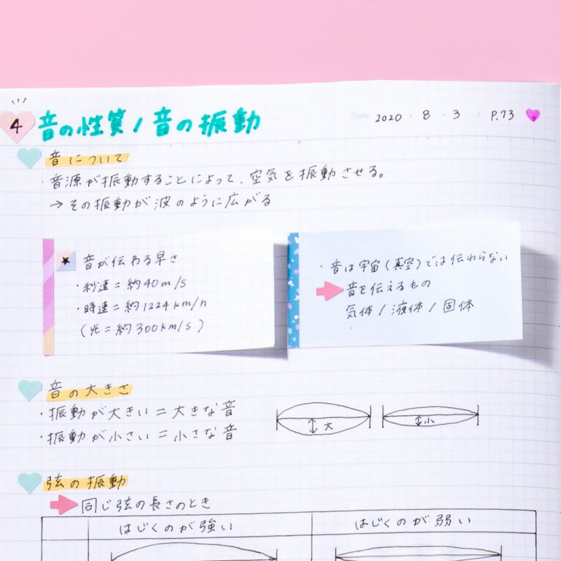 A罫線ノートにぴったり貼れるサイズ感がポイント。