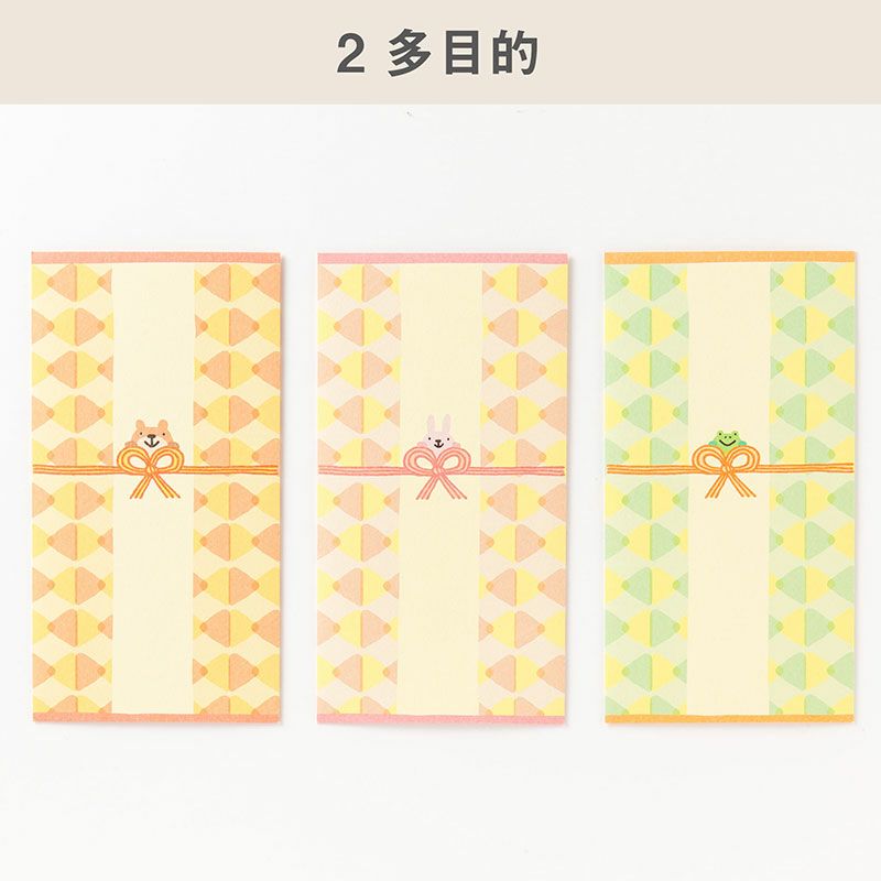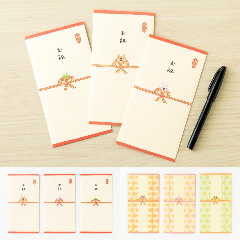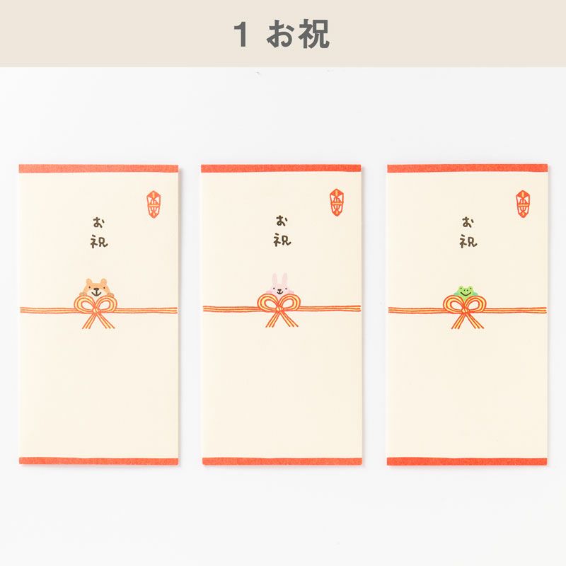 水引きのイラストがやわらかい印象の金封です。柄違いの3枚入りで贈り分けにピッタリ★