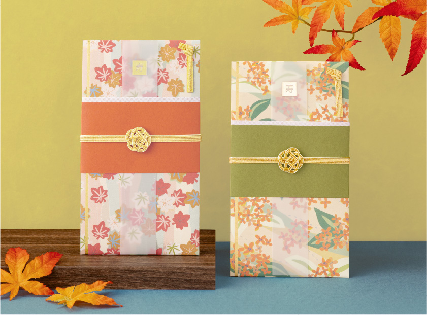 秋の花々や風景をデザインしたオリジナリティあふれるご祝儀袋。2枚セットは、季節感たっぷりなご祝儀袋を他シリーズからもセレクト。
